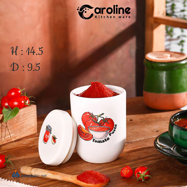 بانکه سرامیکی جای رب کارولین. ظرف ربی کارولین با بدنه سرامیکی و درب سرامیکی دارای واشر برای جلوگیری از نفوذ هوا، تولید شده از بهترین مواد اولیه درجه یک و با طراحی زیبا و مدرن آماده ارسال به سراسر کشور می باشد. شما همکاران عزیز می توانید محصولات برند کارولین را به صورت آنلاین و زیر قیمت کارخانه خریداری نموده و درب فروشگاه خود تحویل بگیرید