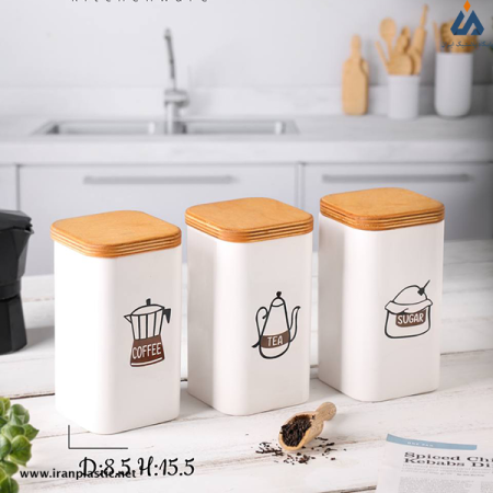 بانکه سرامیکی چهارگوش سایز 1 با درب چوبی کارولین