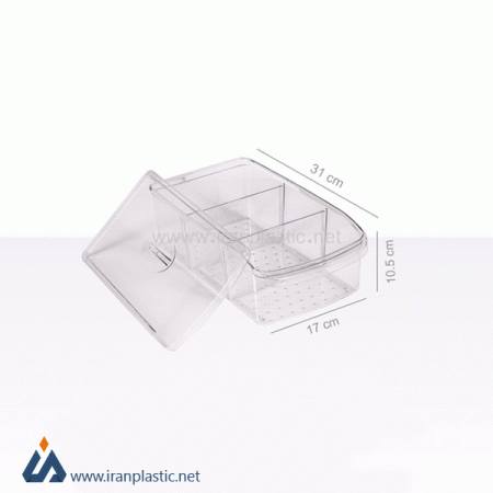باکس یخچالی کریستال سایز 2 مرسه پلاست. باکس های یخچالی مرسه در سه سایز مختلف با مواد اولیه کاملا بهداشتی تولید می گردد. باکس های یخچالی برای نظم دهی محصولات داخل یخچال کارایی دارد و جزء پرفروش ترین های مرسه پلاستیک می باشد.