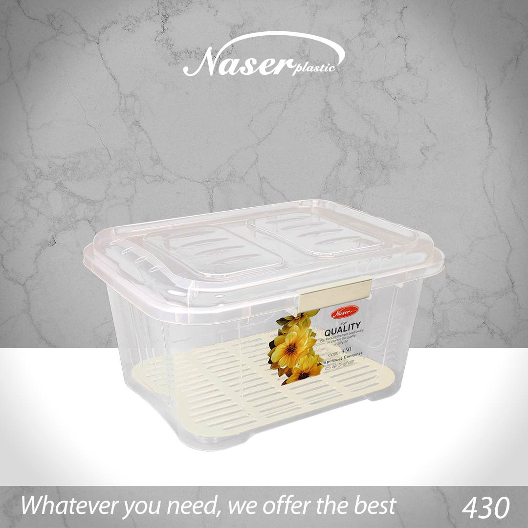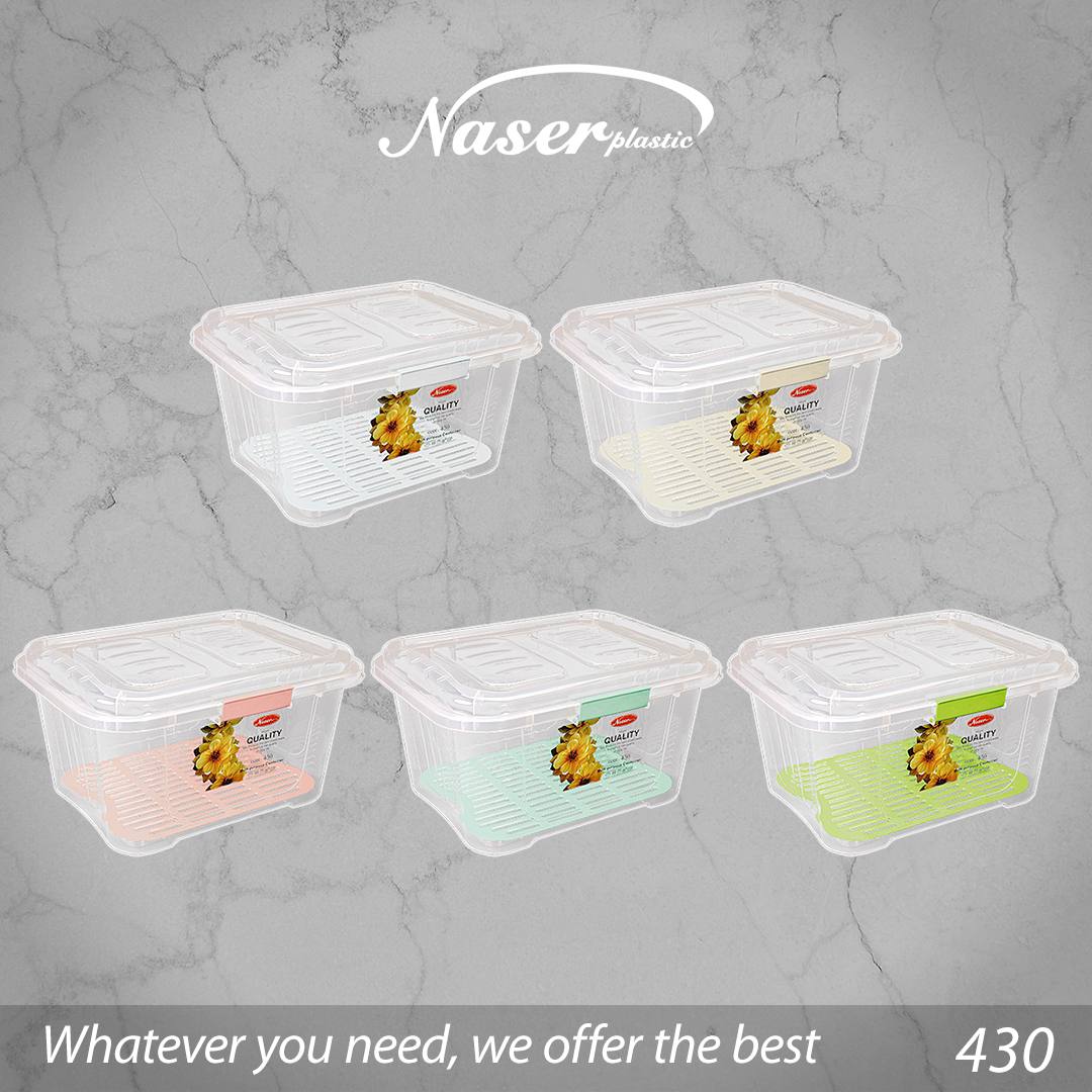 قیمت یک کارتن با کسر تخفیف : 5,360,966 تومانجانانی قفلی شفاف ناصر پلاستیک مدل 430. جانانی های ناصر پلاستیک با طراحی زیبا و کیفیت تولید بالا یکی از پرفروش ترین محصولات این کارخانه می باشند. جانانی های ناصر پلاستیک در نه سایز مختلف و در رنگهای متنوع آماده ارسال به سراسر کشور می باشد.