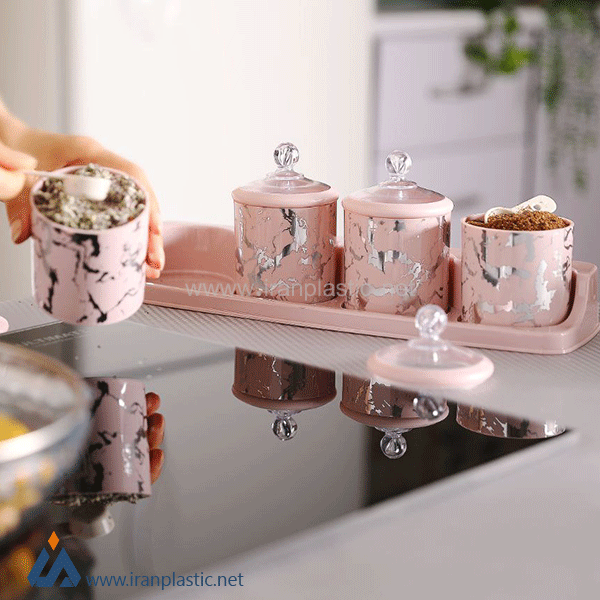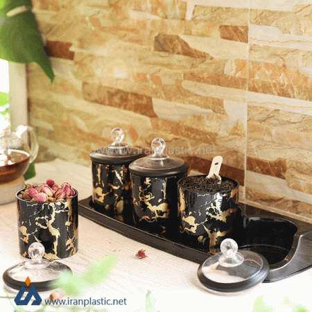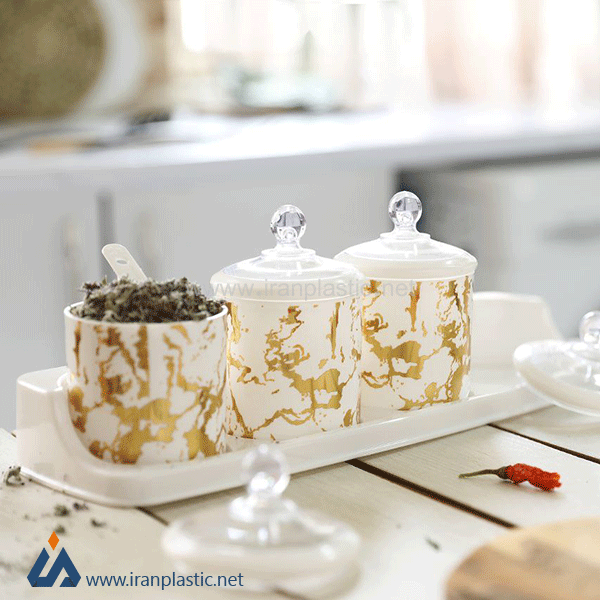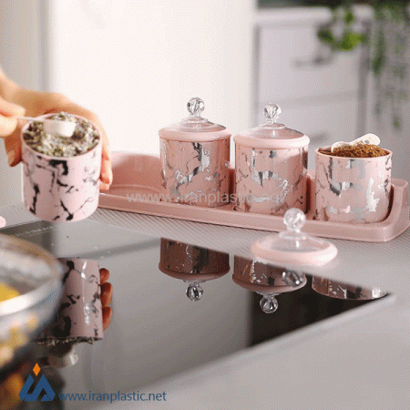 قیمت یک کارتن با کسر تخفیف : 2,531,427 تومانجا ادویه پنج پارچه ماربل رزمن پلاستیک. ست جا ادویه پایه دار 5 پارچه طرح ماربل رزمن پلاستیک در رنگبندی متنوع و بسیار شکیل تولید و توزیع می گردد. کیفیت بالا و زیبایی محصولات رزمن این اجناس را به محصولاتی پر فروش تبدیل کرده است