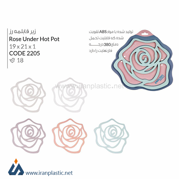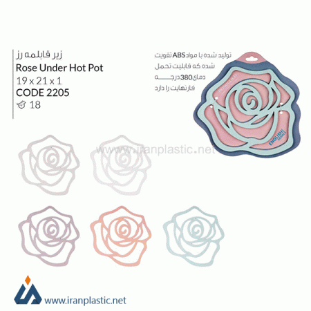 قیمت یک کارتن با کسر تخفیف : 1,468,599 تومانزیر قابلمه رز رزگلد پلاستیک 2205. زیر قابلمه ی رز محصول جدیدی از کارخانه رزگلد پلاستیک می باشد که در آشپزخانه ها کاربرد فراوانی دارد. این محصول ساخته شده از مواد ABS تقویت شده ، با قابلیت تحمل دمای 380 درجه فارنهایت است.
