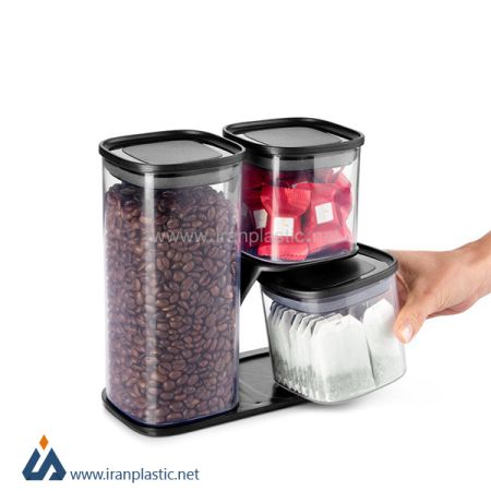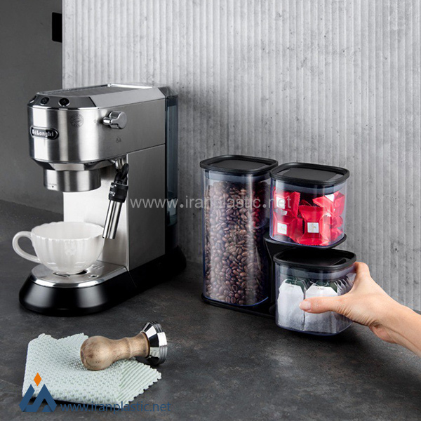 ست بانکه باریستا آریسام پلاستیک دارای پایه نگهدارنده مخصوص. این بانکه ها عموما برای نگهداری قهوه، برنج، حبوبات و ادویه مورد استفاده قرار میگیرند. بشکه های باریستا آریسام تولید شده از مواد اولیه درجه یک و بهداشتی می باشد.