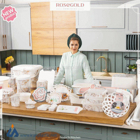 سرویس جهیزیه عروس پلاسکو 58 پارچه رزگلد پلاستیک طرح گارنت. کارخانه آذرساتراپ با برند رزگلد پلاستیک تولید کننده محصولات خانه و آشپزخانه با بهترین کیفیت ممکن در بازار می باشد. سرویس جهیزیه عروس پلاسکو رزگلد با طرح های بسیار زیبا و در بسته بندی بسیار شکیل و زیبا آماده ارسال به سراسر کشور می باشد.