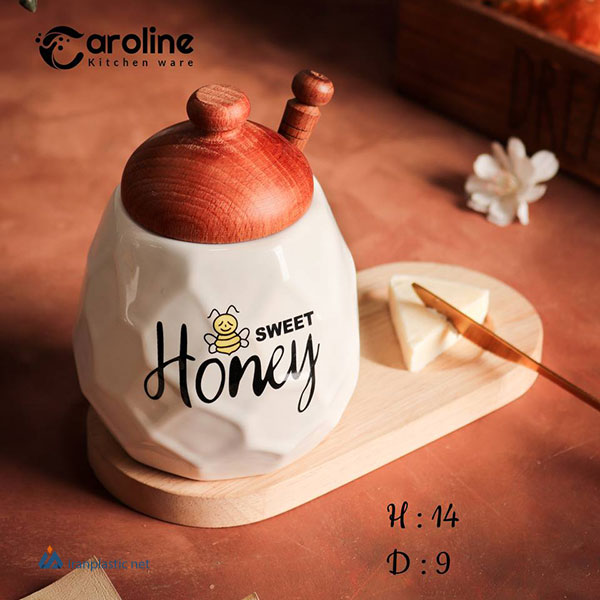 قیمت یک کارتن با کسر تخفیف : 4,446,000 تومانظرف عسل سرامیکی کارولین با درب چوبی در دو سایز مختلف و از بهترین مواد اولیه درجه یک تولید می گردد. شما همکاران عزیز می توانید محصولات برند کارولین را به صورت آنلاین و زیر قیمت کارخانه خریداری نموده و درب فروشگاه خود تحویل بگیرید