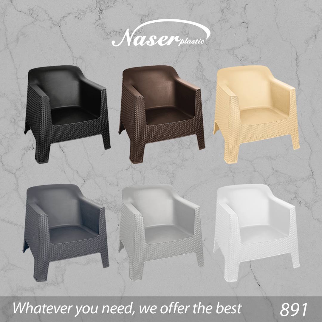 مبل پلاستیکی 891 ناصر پلاستیک در شش رنگ متنوع و مدل های تک نفره و دو نفره تولید و پخش می گردد
