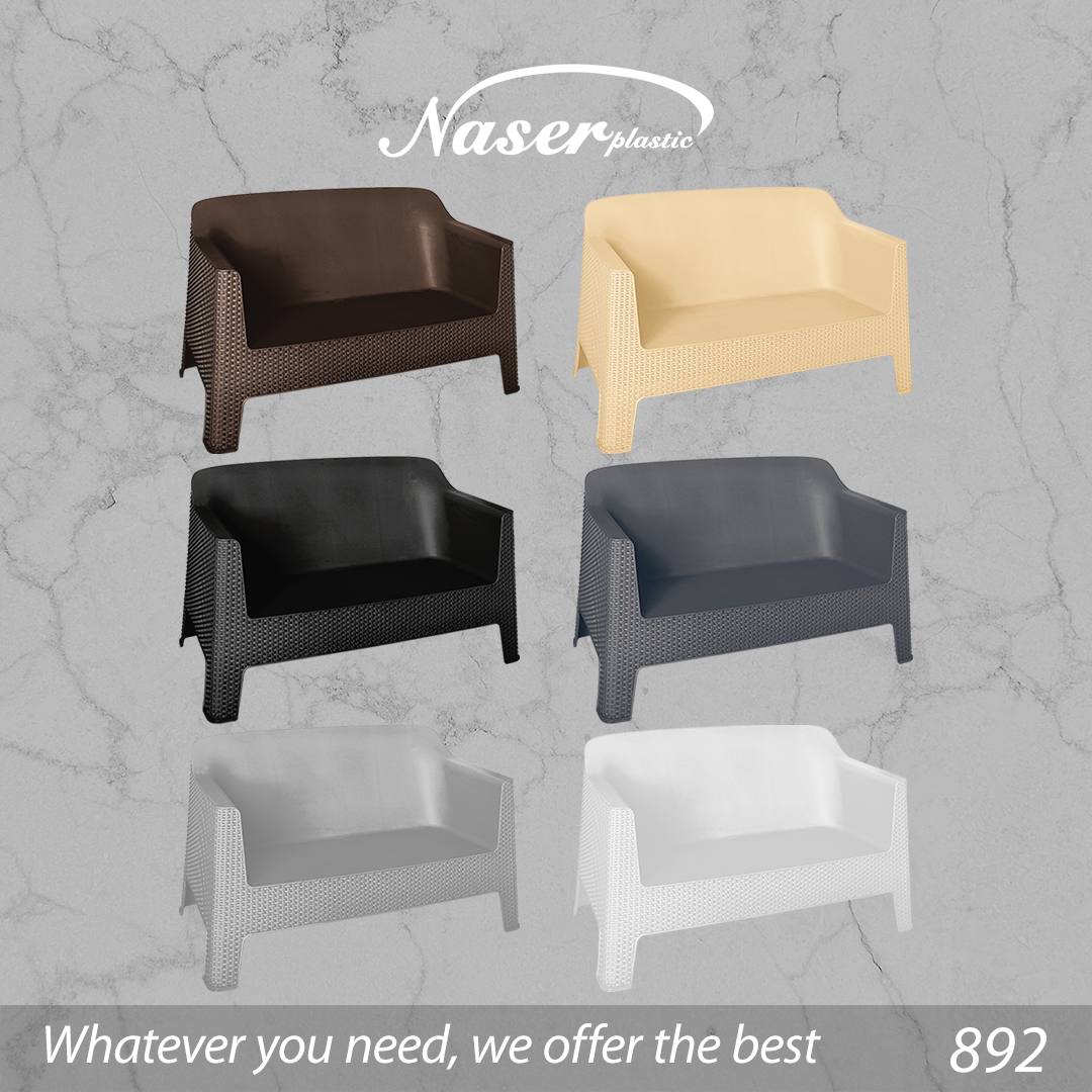 مبل پلاستیکی 891 ناصر پلاستیک در شش رنگ متنوع و مدل های تک نفره و دو نفره تولید و پخش می گردد
