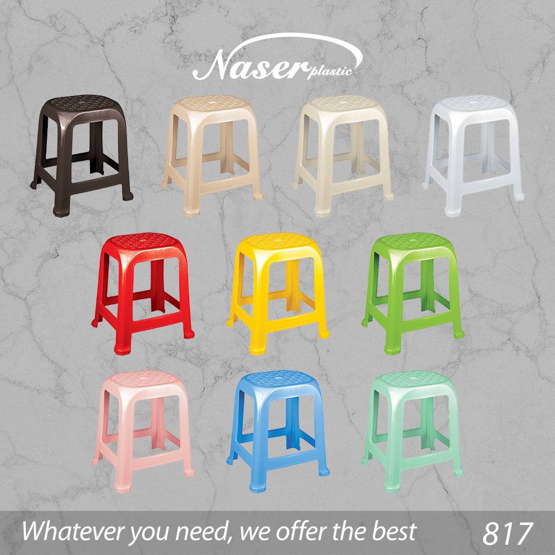 چهارپایه پلاستیکی 817 ناصر پلاستیک در نه رنگ متنوع و در ابعاد 33*27*47.5 سانتیمتر تولید می گردد.