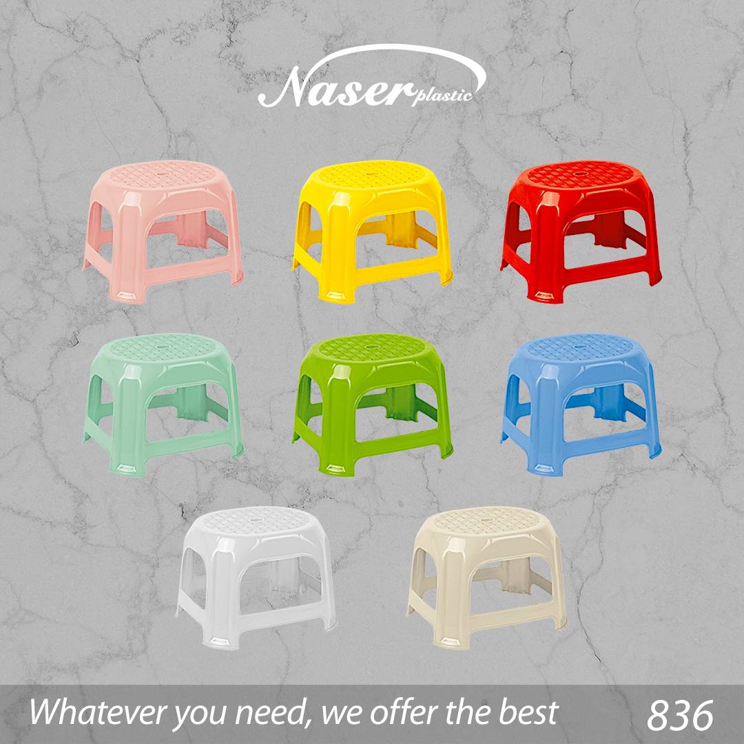 چهارپایه پلاستیکی 836 ناصر پلاستیک در نه رنگ متنوع و در ابعاد 30*25*25 سانتیمتر تولید می گردد.