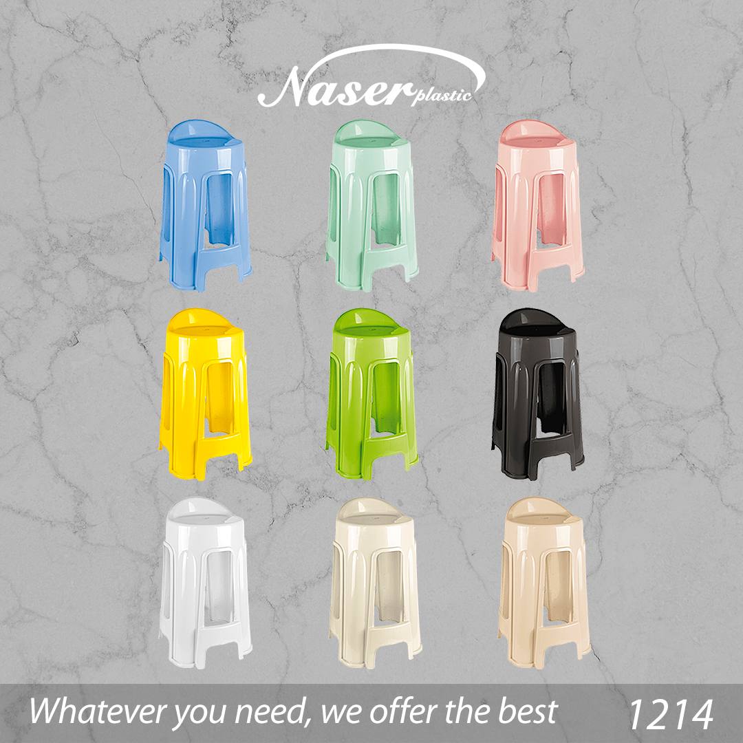 چهارپایه پلاستیکی 1214 ناصر پلاستیک در نه رنگ متنوع و در ابعاد 34*38*68 سانتیمتر تولید می گردد.