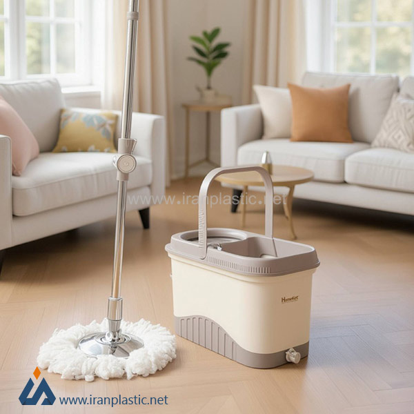 این محصول یک ست کامل نظافت کف است که شامل سطل پلاستیکی باکیفیت، سبد خشککن فلزی مقاوم و یک دسته تی با سری حولهای (میکروفایبر) میباشد. ویژگی اصلی آن، پدال مکانیکی است که بدون نیاز به برق و باتری، امکان چرخاندن و خشککردن تی را تنها با فشار پا فراهم میکند.