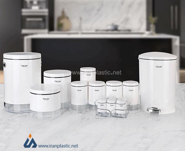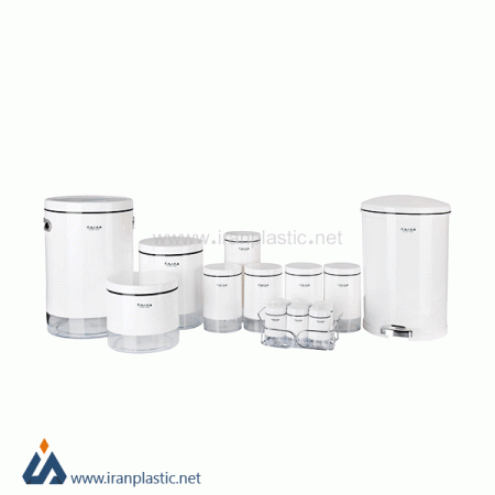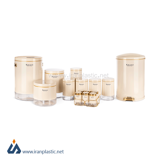 سرویس 16 پارچه آشپزخانه کارن پلاستیک. سرویس آشپزخانه کارن در رنگهای سفید و طلایی. پخش عمده محصولات کارن پلاستیک به سراسر کشور